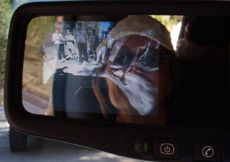 HUMMER’s quirky rear-view camera no longer slides out of the mirror housing. The camera image now shows up directly on the left side of the mirror face itself. We only had a look at it once, and in bright light it could take a second to orient your eyes to the lack of contrast, but for our money it’s a much more graceful arrangement than the previous pop-out version. The rear-vision camera is a $550 option… after you buy the tow package, which is a $420 option.